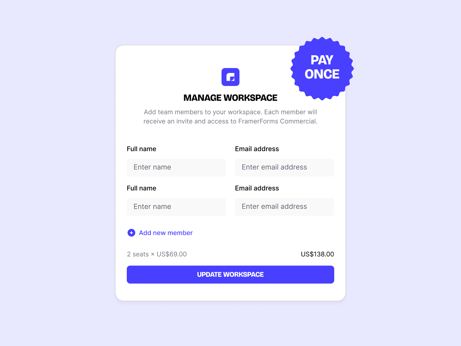 No more need to share logins with Workspaces. Give everyone on your team full access to FramerForms .